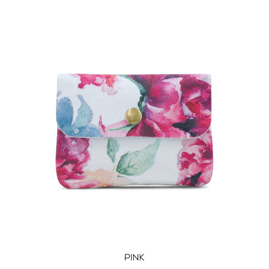 NATTY - Small Italian Classic Leather Coin Purse - Various Colours - Floral Print