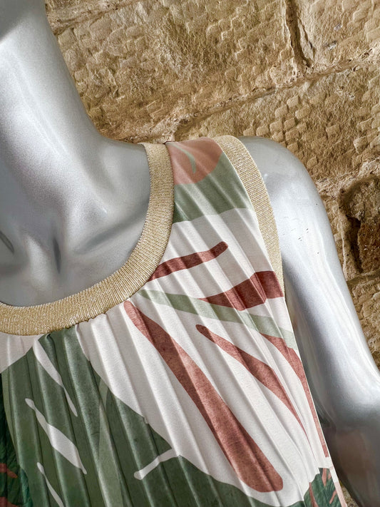 HARPER - Satin Pleated Leaf Print Maxi Dress - One Size - Various Colours