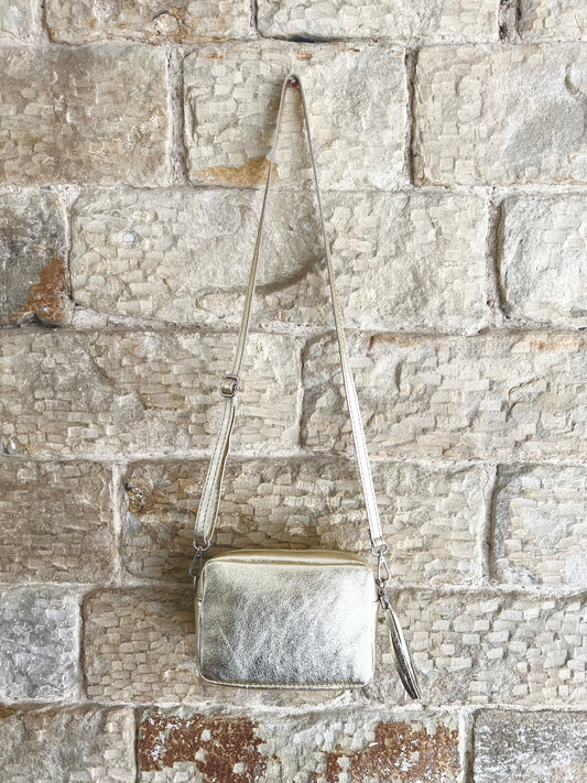 NIKKI - Metallic Leather Cross Body 'Camera' Bag with Tassels - Various Colours