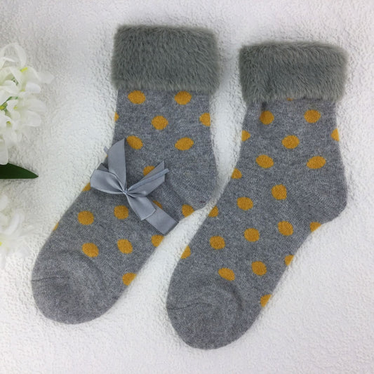 SOCKS - Wool Blend - Various Patterns - Faux Fur Cuff - One Size