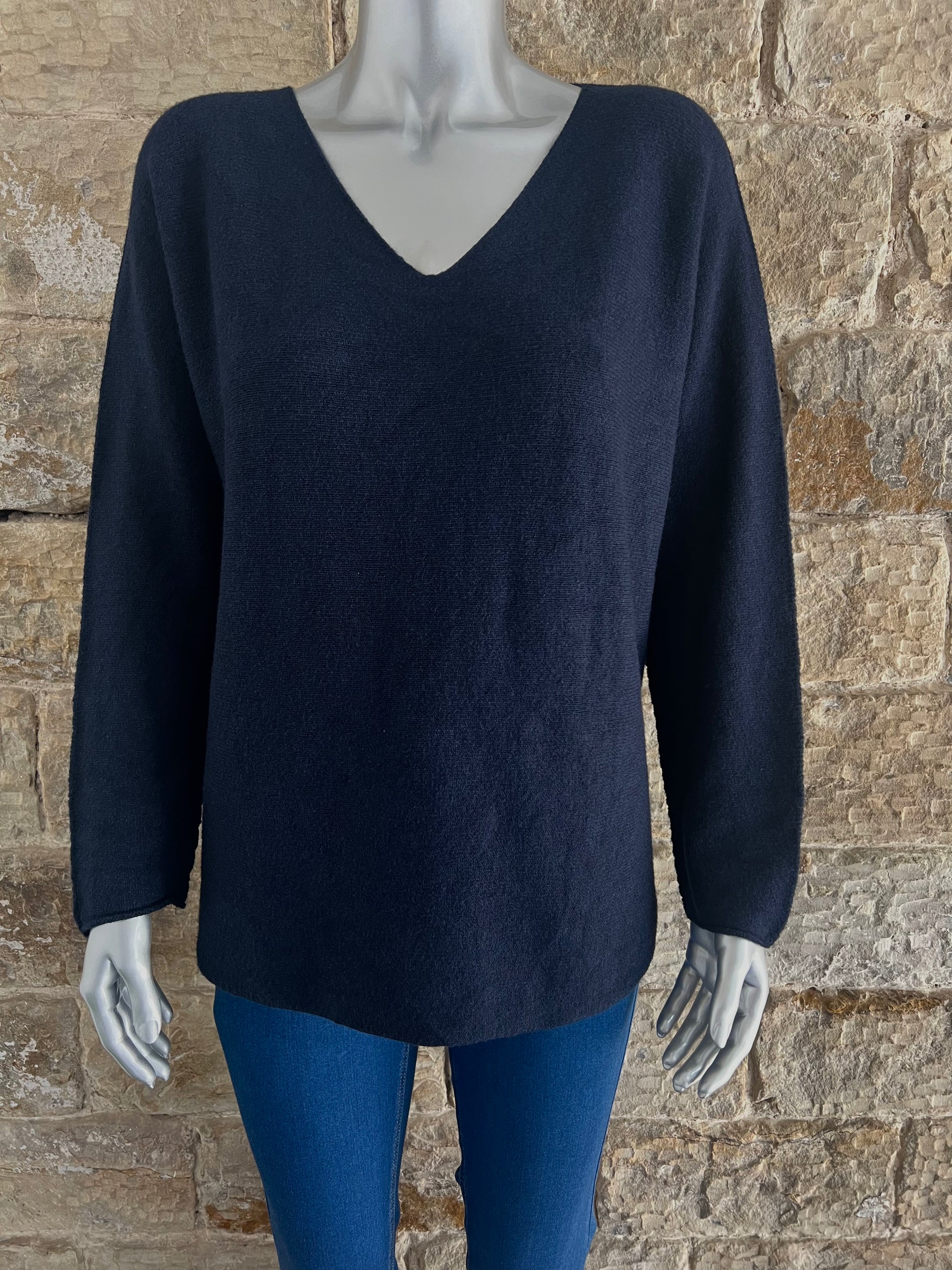 ALICE - V-Neck Sweater - Navy Blue - One Size