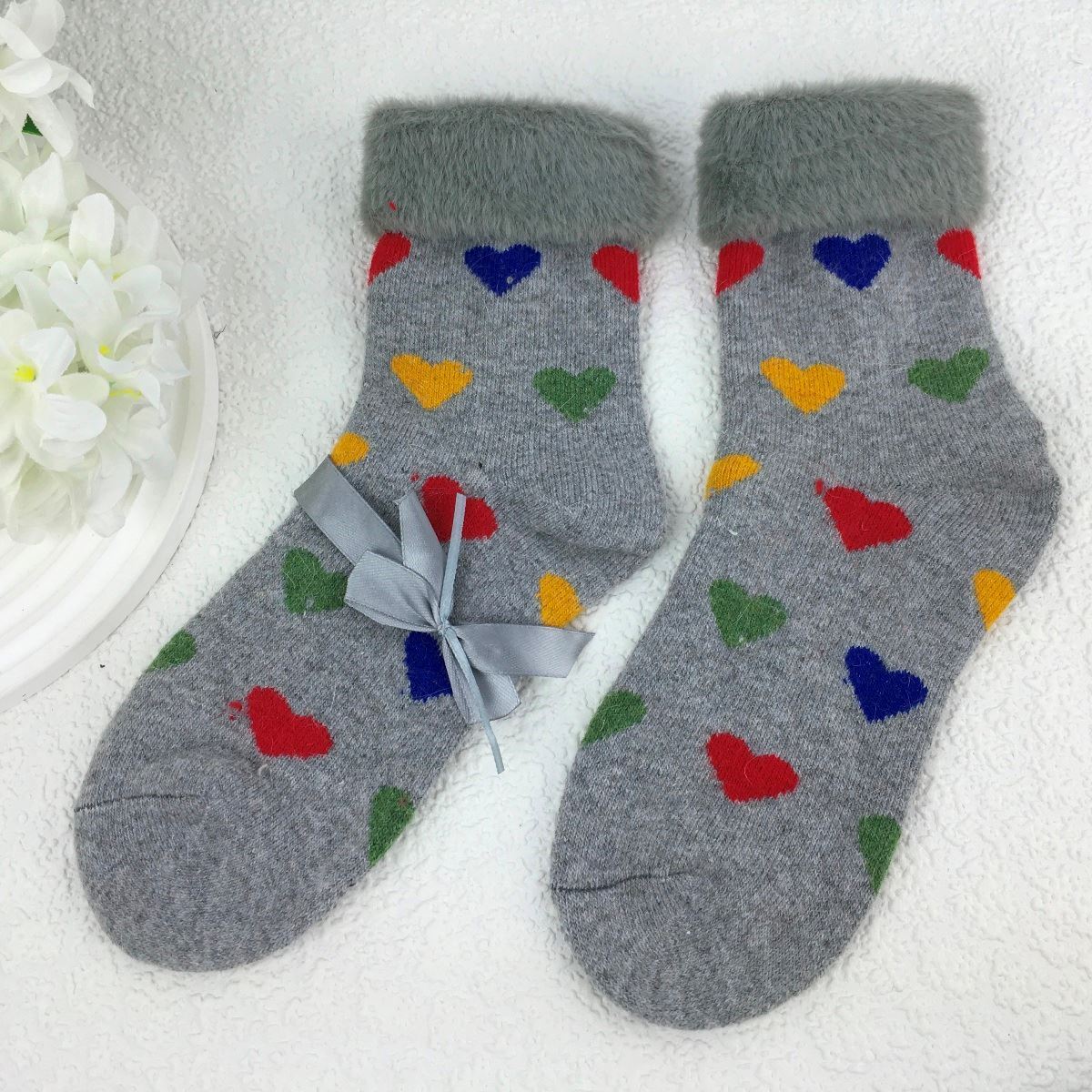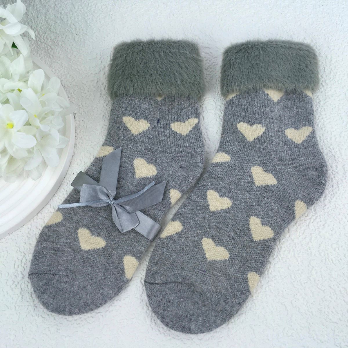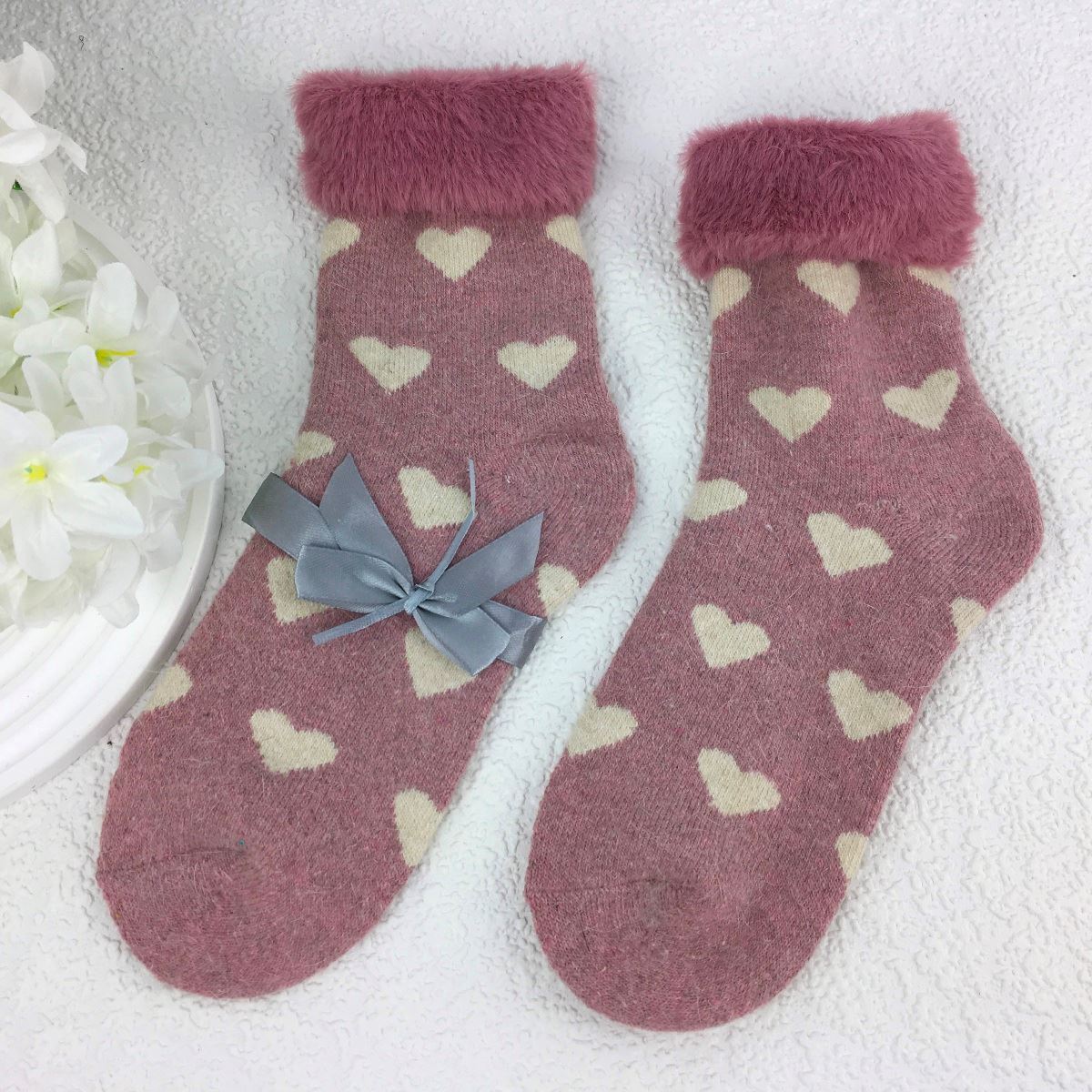 SOCKS - Wool Blend - Heart Pattern - Faux Fur Trim - One Size - Various Colours