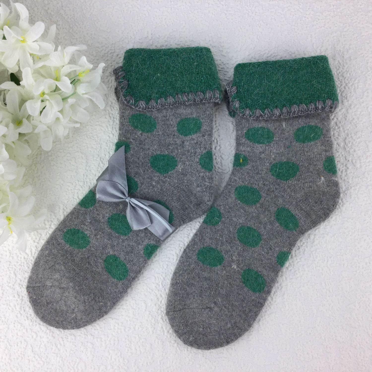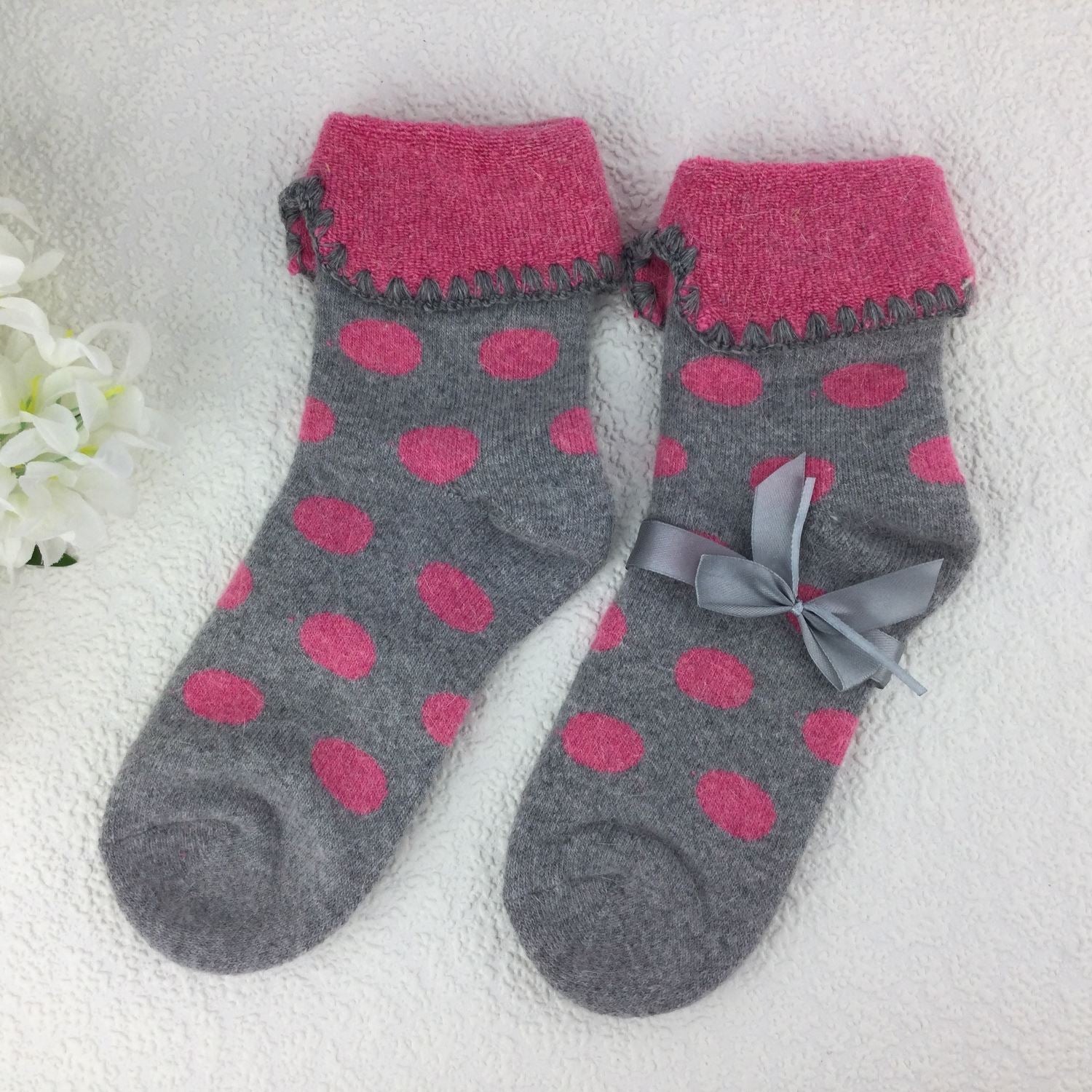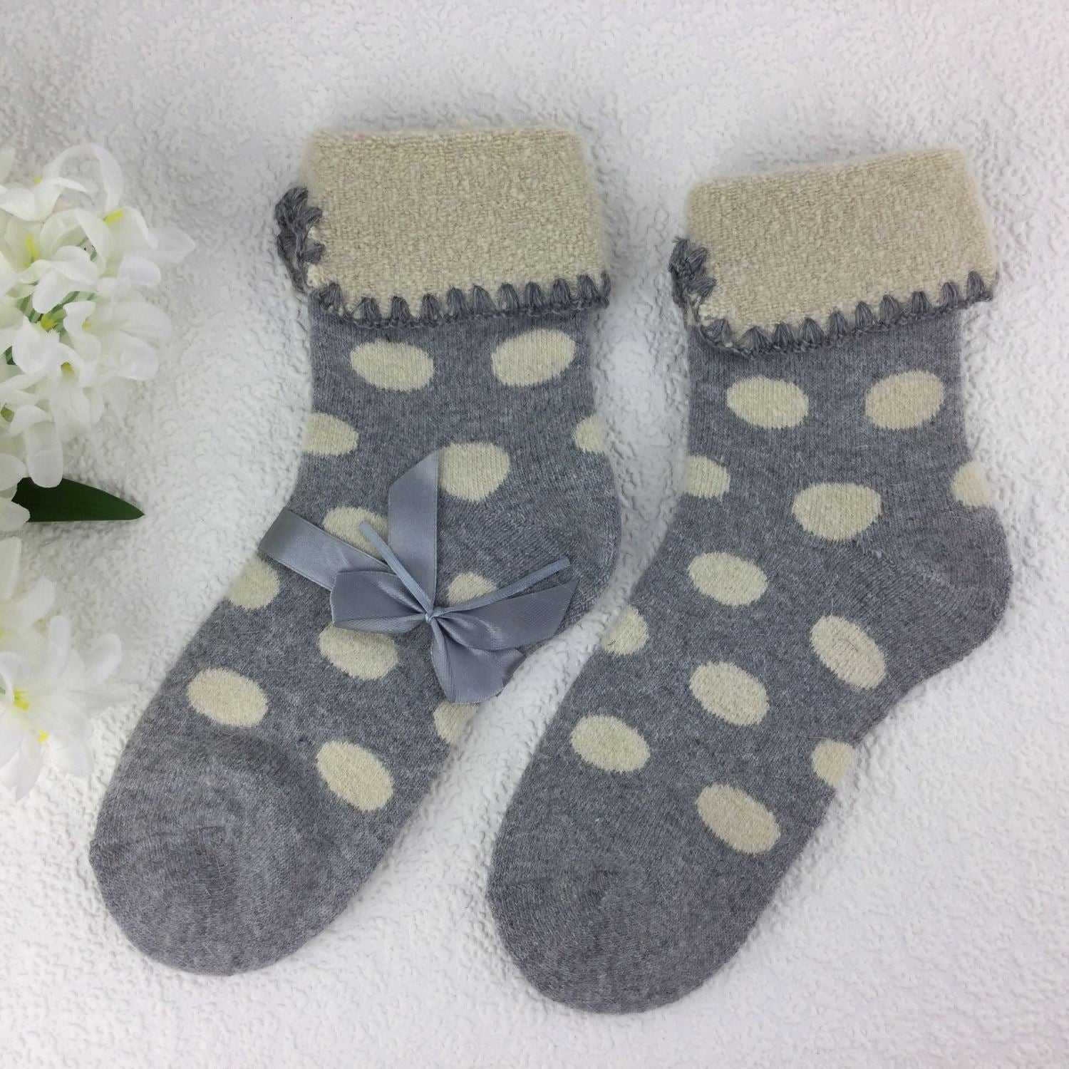 SOCKS - Wool Blend - Spotty - Cuff Trim - One Size - Various Colours