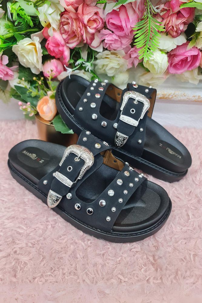 STEVIE - Rivet Buckle Sliders - Black - Sizes UK 3-8